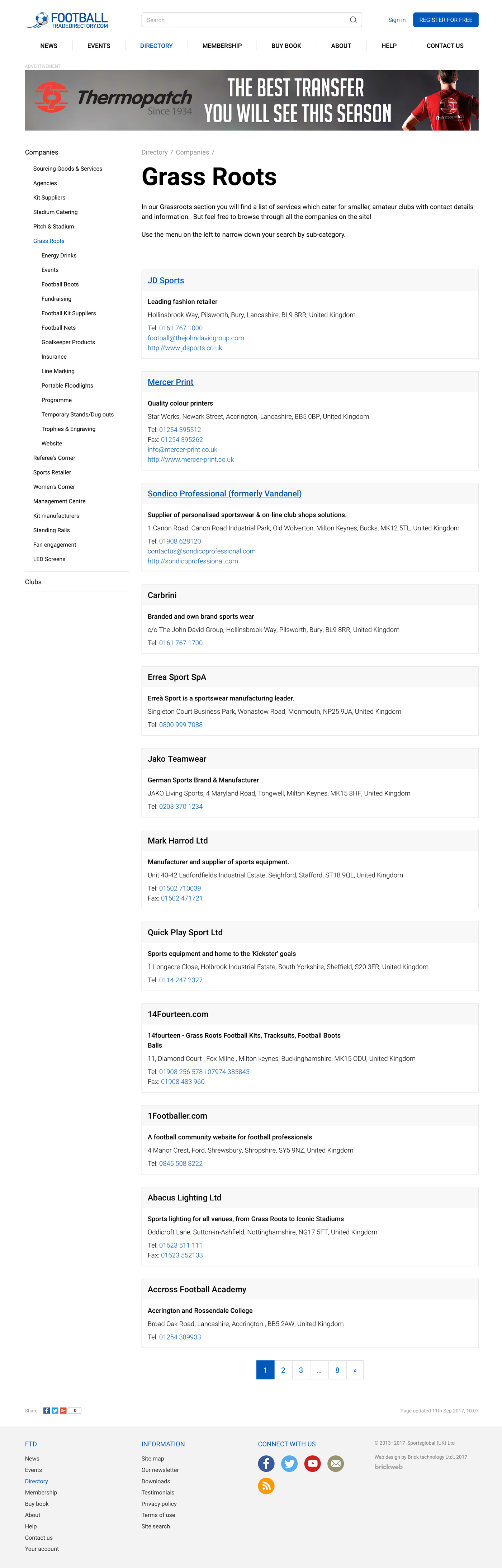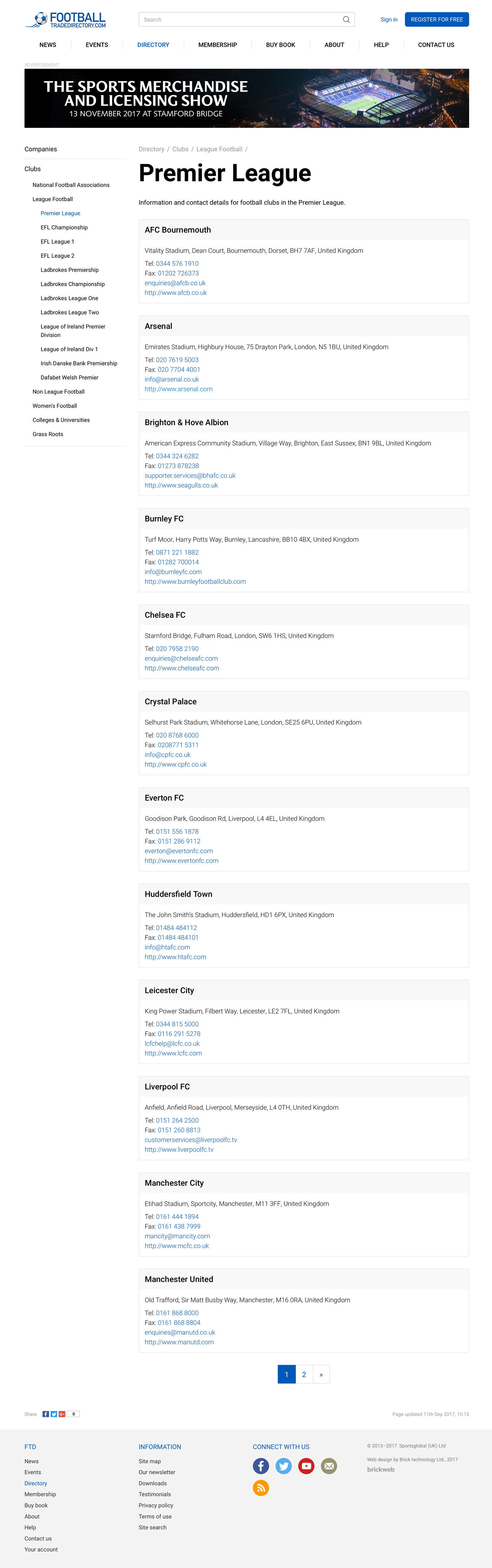 From Premier League to Grass Roots. Football Trade Directory – from Premier League to Grass Roots.