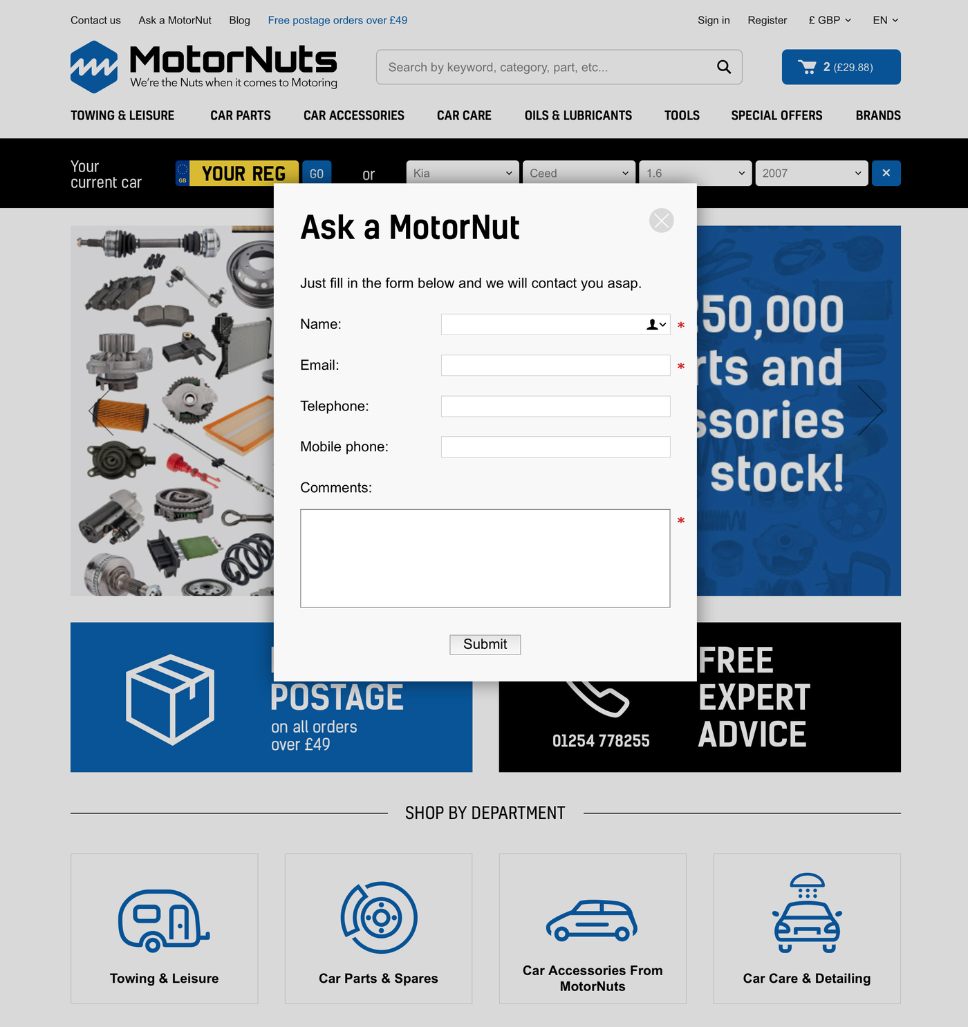 MotorNuts Enquiry form