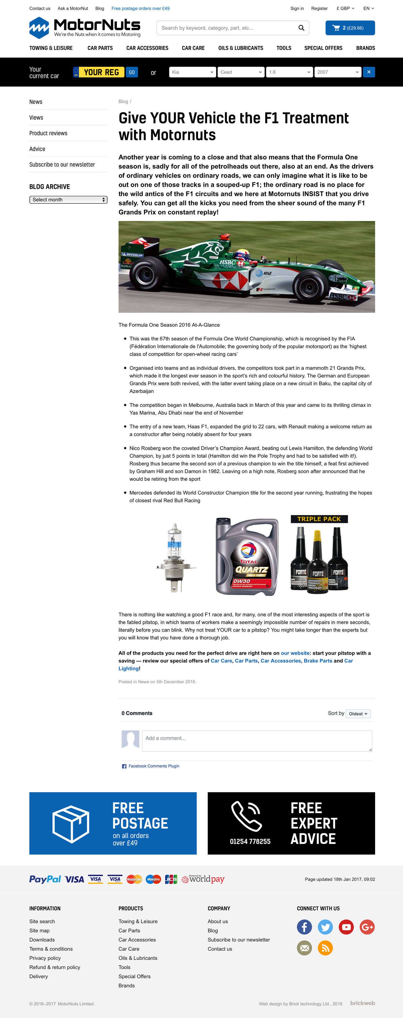 Online car spares company traditionally trading from a bricks & mortar local counter in Darwen Lancashire. Now wanting to trade online attracting mass market buyers of car and motorcycle parts & accessories and aiming to form certain niche speciality areas.