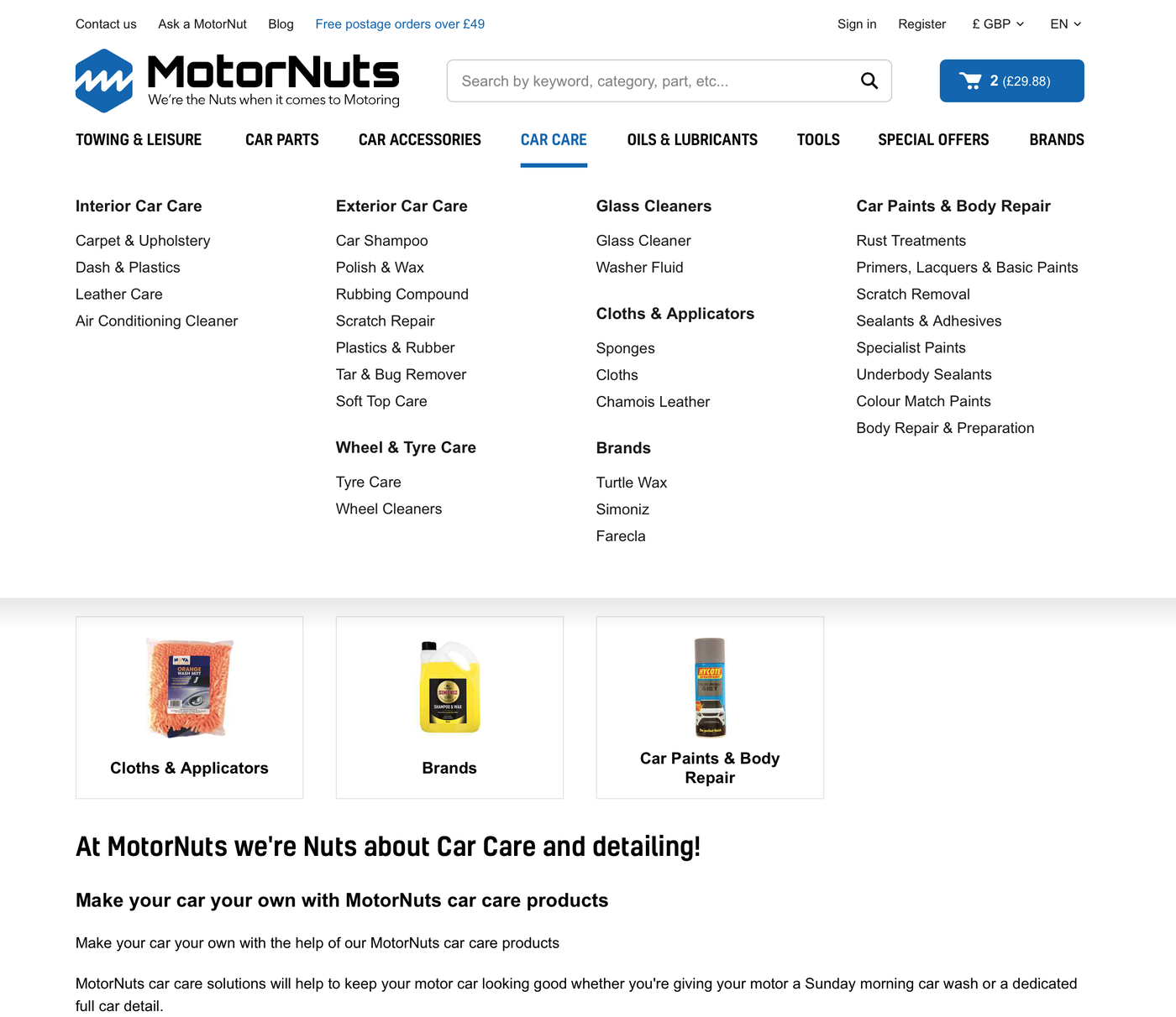 MotorNuts Shopping basket